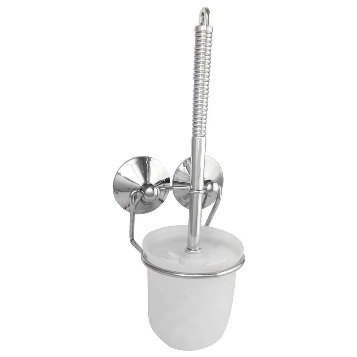 Chrome plated toilet brush with glass holder.