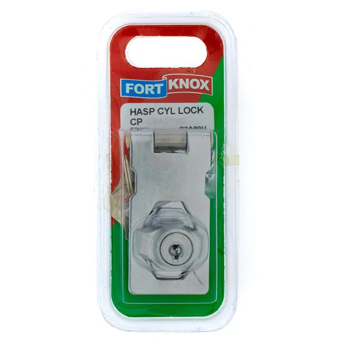 Similar to a hasp and staple, but instead of a staple, it has a cylinder lock. It can be used to lock up lockers, kists and even a garden shed.