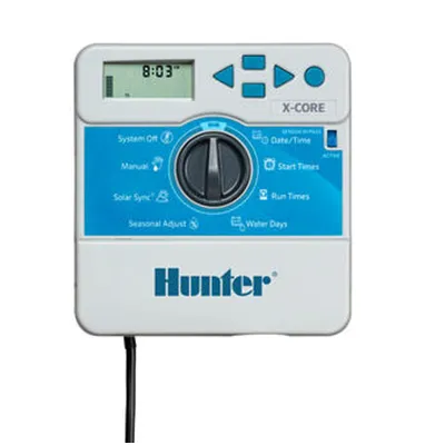 This entry-level residential controller offers simple operation with “smart” Solar Sync compatibility. With easy-to-configure control for up to 8 stations, including 3 programs and 4 start times each, the X-Core is the perfect solution for residential applications. Plug in the revolutionary Solar Sync ET sensor and the X-Core is converted into a “smart controller,” that regulates irrigation runtimes based on locally measured weather. X-Core is also compatible with Hunter remotes for quick, wireless activation of irrigation. Installation, operation and maintenance are designed to be simple while still delivering optimal efficiency or reliability.